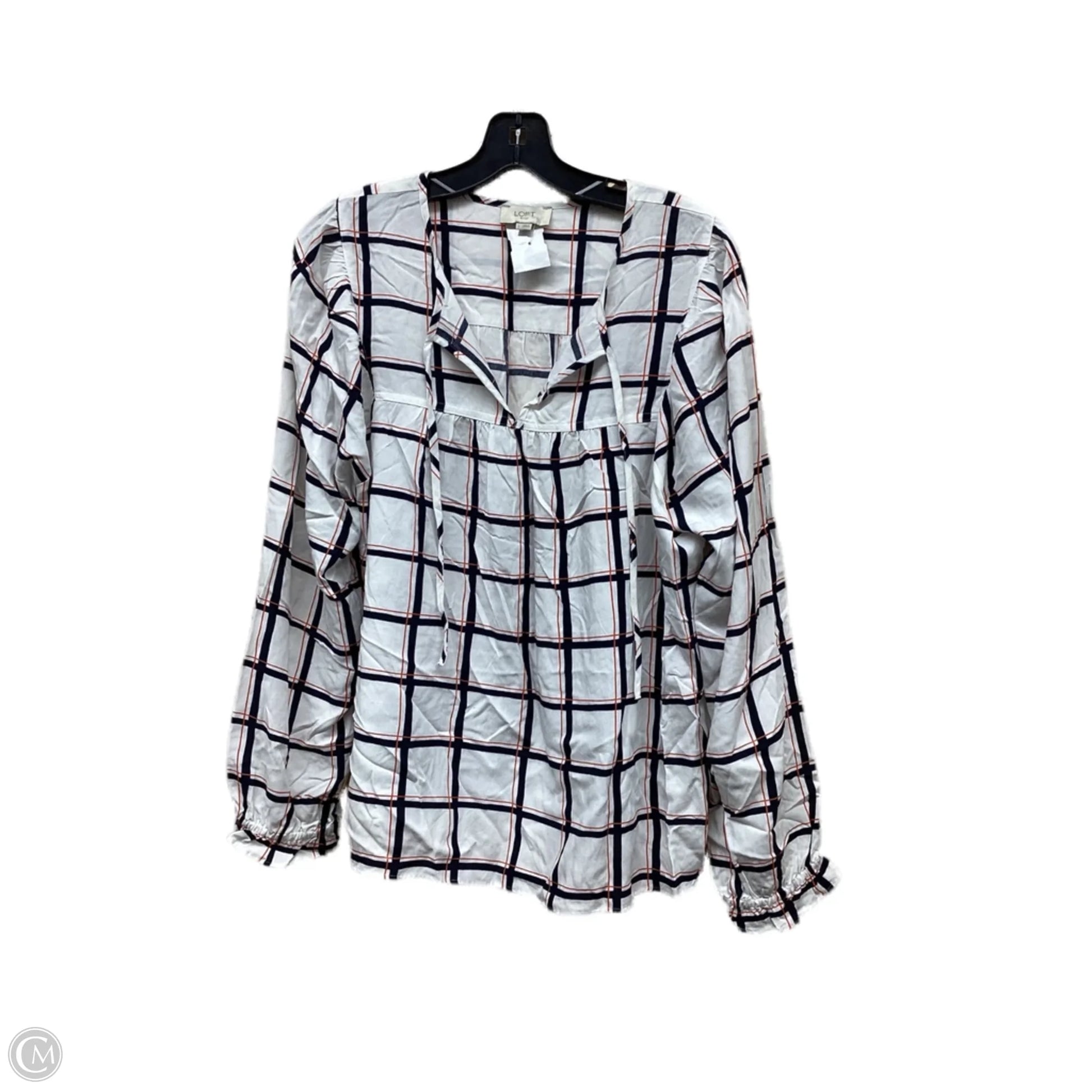 Top Long Sleeve By Loft In Plaid Pattern, Size: L